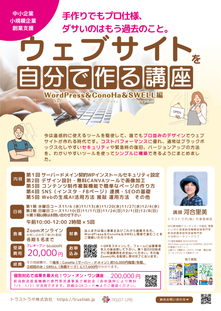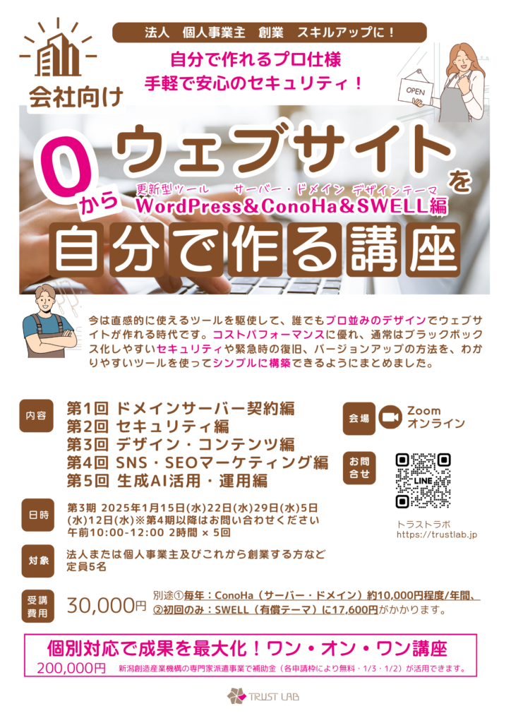 2025年1月からの講座も募集開始しました ウェブサイトを自分で作る講座【中小企業/小規模企業/創業支援】向け