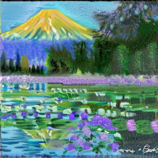 AIピカソアンドロイド版で遊んでみました。 「富士山 モネ風」と音声入力 更新ボタンで追加 更新ボタンでさらに追加 -
